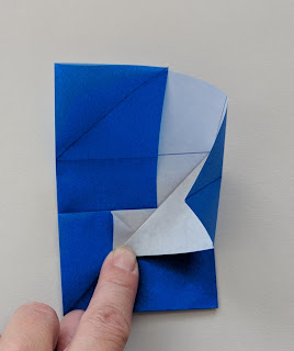 She asked if anyone knew how to fold it and I thought, "That's easy, it's just a twist fold but on the back side." I didn't have time to study it that day, but yesterday I decided to tackle the problem. I tried several folds that I thought would work and they didn't. Then I tried something that seemed similar, but wasn't. Then I desperately tried to find the directions online. There were none. I stared at the image and tried to unfold it in my mind and couldn't quite see it. I decided to take a break and come back to it today after finding a YouTube video that made a similar fold called the square tato.